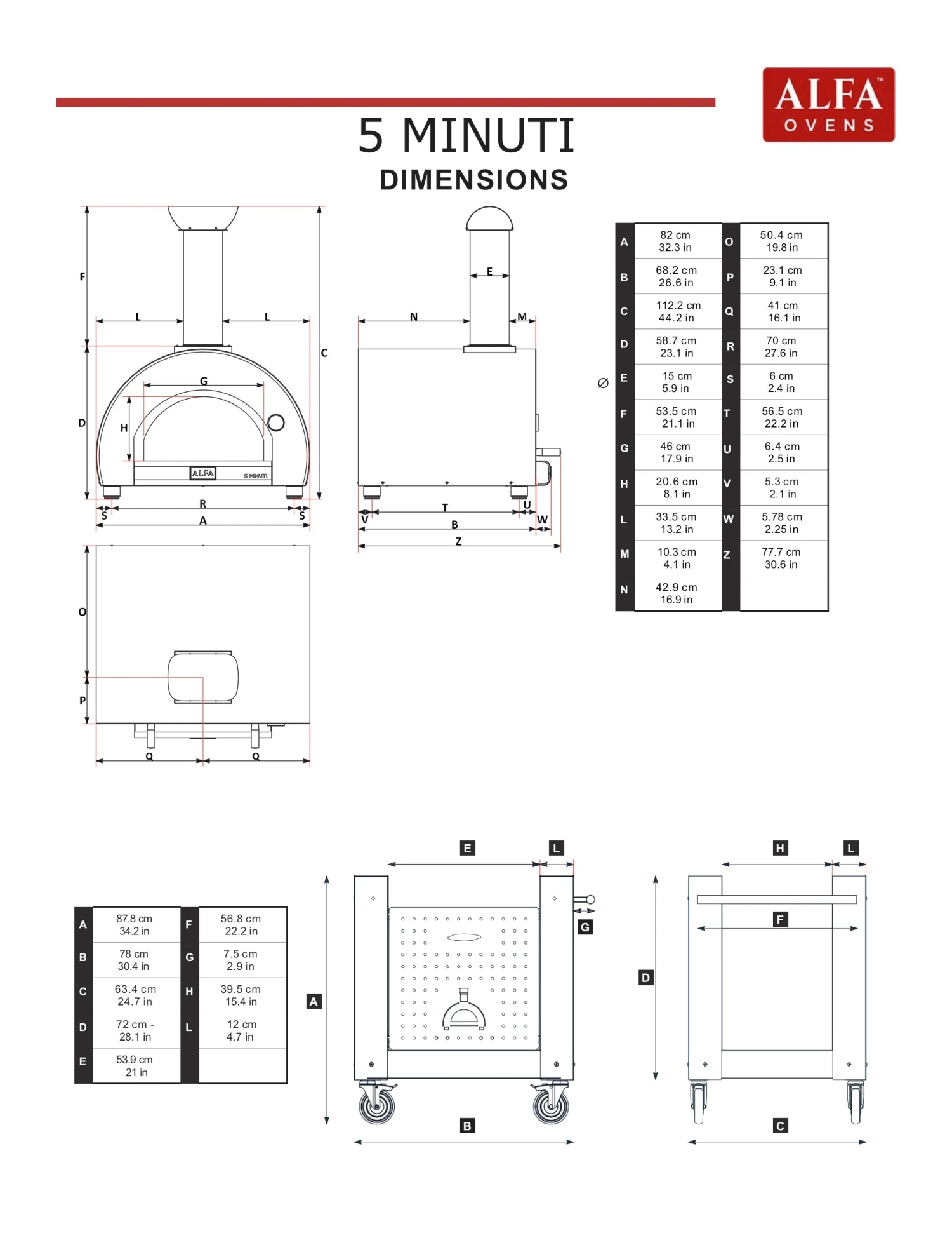 Compact wood-burning oven for pizza and bread. Fit for balconies, terraces and gardens; easily movable thanks to the built-in wheels.