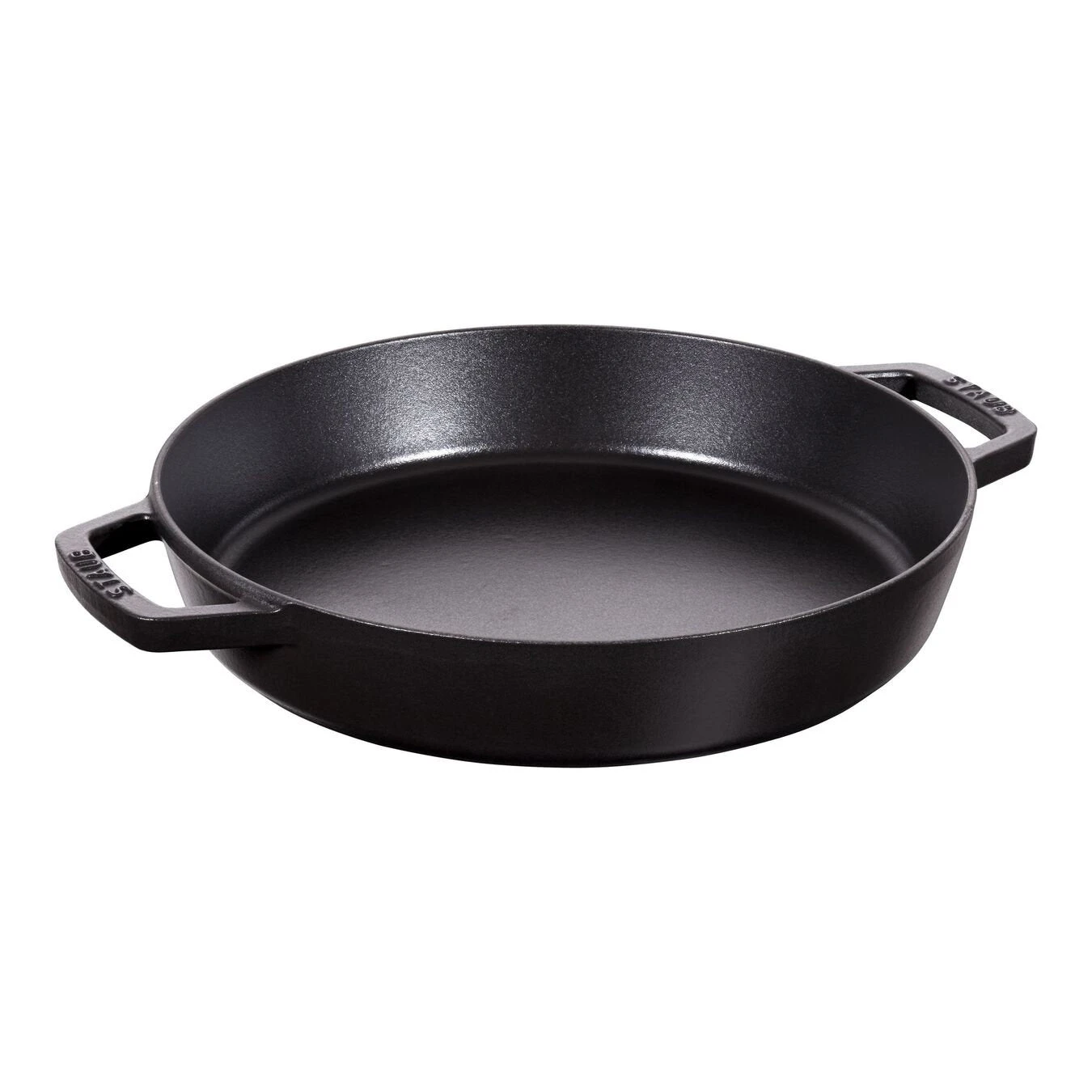 The Staub fry pan browns foods beautifully, be it chicken breasts, potatoes, or bacon. The enameled black matte interior imparts texture, promoting exceptional browning. Cast iron offers steady, even heat distribution, so the temperature of the pan won’t drop as you cook. Low, curved sides make it easy to flip the food, which releases easily.Staub enameled cast iron cookware is the choice of the world’s best chefs. With exceptional durability, it is perfect for day-to-day use in both gourmet home kitchens and prestigious restaurants around the world. Each piece transitions beautifully from the kitchen to the table. Built to last a lifetime, these heirloom pieces can be passed from generation to generation.