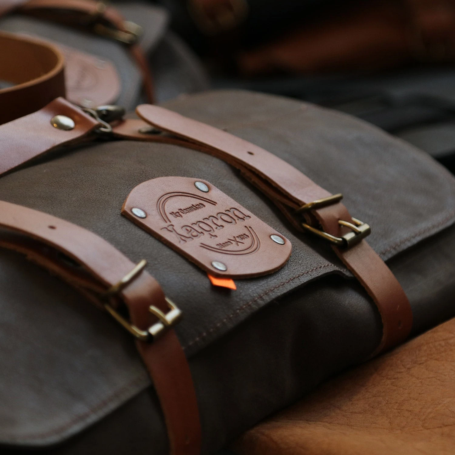 Utah leather. These leather chef knife roll bags are cut from, extra-oiled, full grain buffalo leather. Full grain leather is special type of leather cut. This means the surface of the hide stays completely intact. This buffalo leather knive roll bag will secure your knives firmly. Great for culinary students and professional chefs. The perfect gift for bbq and grillmasters.