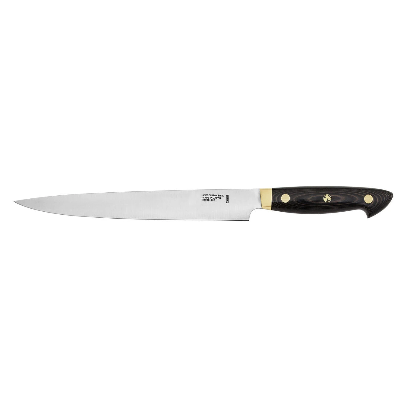 - Elegant micarta handle with brass rivets and Bob Kramer mosaic pin