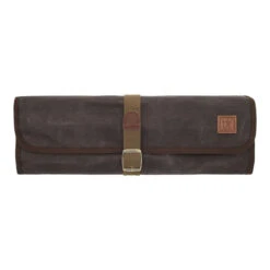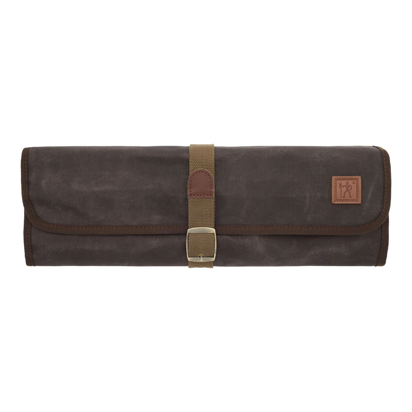 The tool set comes housed in a handsome canvas carry bag that features leather and brass details. Each knife blade is protected by the included safety sheaths.